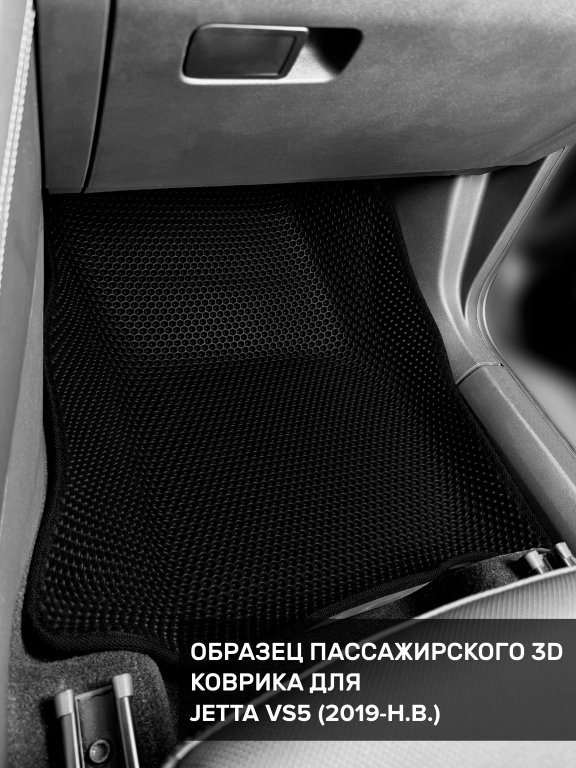 Автомобильные 3д коврики для Jetta VS5 (2019-н.в) в салон авто и багажник сделаны из инновационного полимерного материала EVA, изысканная структура в виде ячеек не дает воде, пыли и снегу разлетаться по салону машины и багажнику. 3д коврики зафиксированы на полу определенными клипсами, соответствующими Jetta VS5 (2019-н.в), и не двигаются в процессе езды.