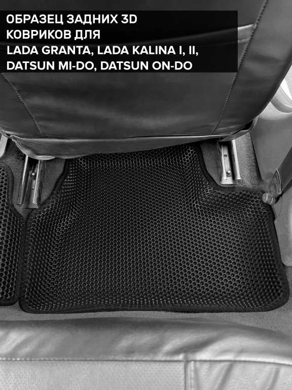 Автомобильные 3д коврики для Lada Kalina II (2013-2018) в салон авто и багажник сделаны из инновационного полимерного материала EVA, изысканная структура в виде ячеек не дает воде, пыли и снегу разлетаться по салону машины и багажнику. 3д коврики зафиксированы на полу определенными клипсами, соответствующими Lada Kalina II (2013-2018), и не двигаются в процессе езды.